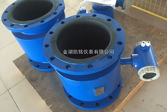 管道式污水流量計采用電磁感應原理測量介質流體流速的電磁流量計。它在管道的兩側加一個磁場,被測介質流過管道就切割磁力線,在兩個檢測電極上產生感應電勢,其大小正比于流體的運動速度。可以用于測量酸、堿、鹽溶液、水煤漿、礦漿、砂漿灰泥、紙漿、樹脂、橡膠乳、合成纖維漿和感光乳膠等各種懸浮物、氣化汽和粘性物質的流量。電磁流量計密封性能好,還可用于自來水和地下水道系統。而且測量過程不與流體接觸,適于制藥、生物化學和食品工業。