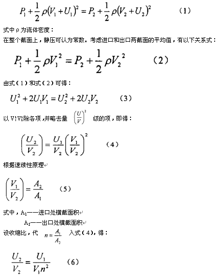 設整流器進口處壓力為P1,平均流速為V1,某點上的速度不均勻度為U1,出口處壓力為P2,平均流速為V2,通過進口處某點同**線,在出口處的速度不均勻度為U2,沿該流線,由伯努利方程得: