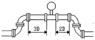縱端面采用特殊形線的變徑整流器(己申報(bào)****),具有整流,提高流速及改變流速分布的多重作用,其結(jié)構(gòu)尺寸小,長(zhǎng)度僅為工藝管內(nèi)徑的1/3,可以直接卡裝在儀表的兩端,不僅不需要另外附加直管道,而且可以降低儀表對(duì)上游直管道的要求。實(shí)驗(yàn)表明:儀表上游阻力件為一個(gè)平面內(nèi)的兩個(gè)90°彎頭 在一般情況下,鍋爐蒸汽流量計(jì)上游側(cè)應(yīng)加裝大于20倍管道內(nèi)徑長(zhǎng)度的直管道,而鍋爐蒸汽流量計(jì)加裝了變徑整流器大大降低了對(duì)上游測(cè)直管道長(zhǎng)度的要求,其阻力遠(yuǎn)遠(yuǎn)小于傳統(tǒng)的變徑管。更主要的是,可使下限流速降為原來(lái)的1/3,量程比提高到15:1以上。