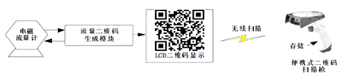 二維碼生成模塊定時向管道式電磁流量計發送采集指令,后者收到指令后發送流量數據。