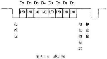 插入式電磁流量計等節點設備和站內PC機間的通信采用異步串行通訊控制規程,并采用地址位喚醒握手協議。因此在協議中規定了傳地址和傳數據兩種不同的幀格式,如圖.64所示。地址幀和數據幀由11位構成,幀格式為l位起始位,l位停止位,8位數據位,1位*9位。我們將*9位設定為“地址/數據指示位”,用來區分所發送/接受的幀信息是地址幀還是數據幀。*9位為1,表示PC機發送/接受的是“地址幀”*9位為O,表示主機發送/接受的是“數據幀”。命令幀與校驗和的發送格式與數據幀相同,因此可由數據幀演化得到。