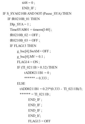 (3)從 80℃升溫到 105℃,用時(shí) 120 min。升溫梯度=(105- 80)/24 = 1.04℃/300 s,蒸汽閥*大開度為 40%。根據(jù)多次生產(chǎn)經(jīng)驗(yàn)總結(jié),進(jìn)入該階段前 60 min,設(shè)定一個(gè)*低閥限 10%,可以避免釜溫波動(dòng)過(guò)大;在該階段后期,如果蒸汽閥長(zhǎng)時(shí)間保持較大的開度,就會(huì)造成反應(yīng)結(jié)束時(shí)釜溫沖到 110℃以上,影響二氯乙烷回收品質(zhì),所以在這一步有兩個(gè)特殊限制條件:①當(dāng)釜溫 >100℃,蒸汽閥門開度 >15%且持續(xù)保持 20 min 以上,升溫速率>1.05℃/400 s 時(shí),自動(dòng)關(guān)閉蒸汽閥;②當(dāng)該步進(jìn)行時(shí)間大于 95 min 且蒸汽閥門開度 >16%持續(xù)保持 400 s 時(shí),關(guān)閉蒸汽閥。