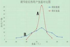 我公司在該小區(qū)管網(wǎng)改造前,在不同單元不同樓層分別安裝100臺(tái)室溫采集器。渦街氣體流量計(jì)調(diào)前數(shù)據(jù)采集于2017~2018年供熱期,調(diào)后數(shù)據(jù)采集于2018~2019年供熱期。經(jīng)過兩個(gè)采暖期,共有96臺(tái)室溫采集器可以正常提供數(shù)據(jù)。數(shù)據(jù)分析結(jié)果見圖3所示。