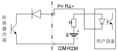 PUL+/ P+、ALM+(AH)、ALM-(AL)和 PDIR(FDIR)均為集電極開路(OC 門)輸出(參閱圖 3.6b、3.6d,用戶接線時(shí)必須參照如下電路外接電源和負(fù)載: