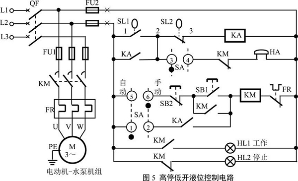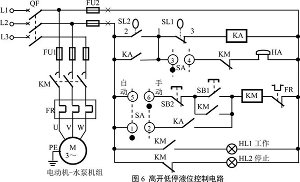 液位的控制,可以是兩個方面:液位低于一定限度時,啟動電動機-水泵機組,使液體能得到及時的補充,比如水塔;液位高于或達到一定限度時,啟動電動機-水泵機組,將液體及時排出,比如地道橋積水或污水池等。